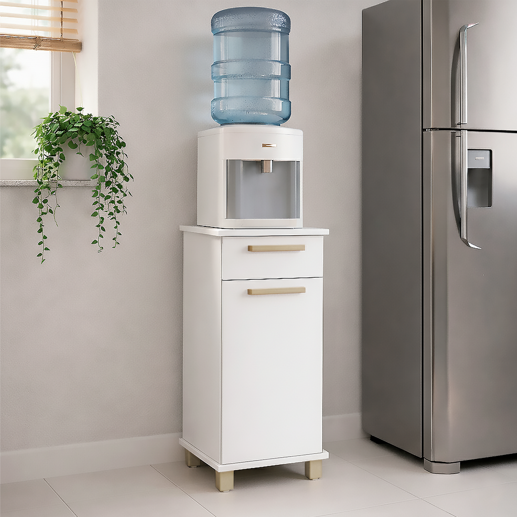 Perfeito para acomodar filtros de água e pequenos utensílios. Combina um design clean com praticidade, oferecendo mais área útil para organização.