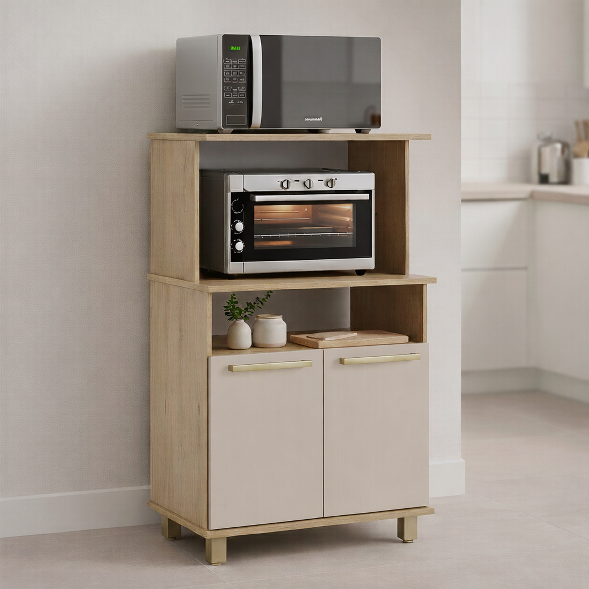O Armário Multiuso Brisa pode ser usado como suporte para louças, mantimentos, pequenos eletrodomésticos e itens de uso diário — não apenas na cozinha, mas também na área de serviço ou lavanderia. Seu design funcional e acabamento clean facilitam a organização em qualquer ambiente.