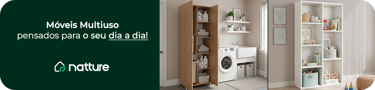 Se você quer aproveitar melhor cada espaço da casa, os móveis versáteis são seus aliados. A Estante Rio ajuda na organização visual de itens e livros; o Armário Brisa traz funcionalidade para diversos ambientes; e o Armário Jade é a escolha ideal para manter a lavanderia organizada e prática.