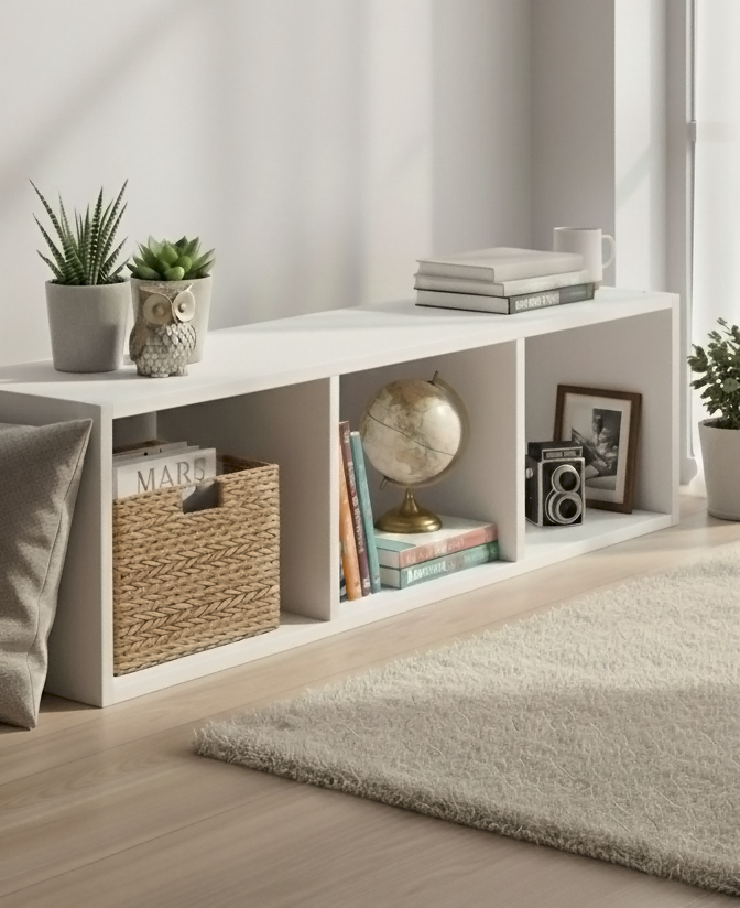Use as Estantes Rio como divisórias sutis em ambientes integrados, suporte para plantas, organizadores de brinquedos ou até estante de livros. Seu visual neutro e modular combina com qualquer estilo de decoração — do escandinavo ao industrial.